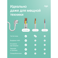 Сетевой фильтр с заземлением на 3 розетки AGNI с выключателем, защитные шторки, 4000 Вт/16 А, удлинитель 2 метра