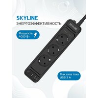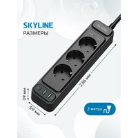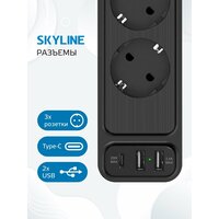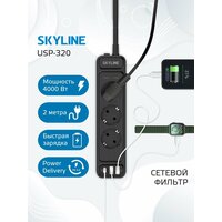 Купить Сетевой фильтр SKYLINE USP-320, 3 розетки, 2 USB + 1 type-C, power delivery, кабель 2 метра, 4000 Вт, 16А, черный с доставкой по всей России.