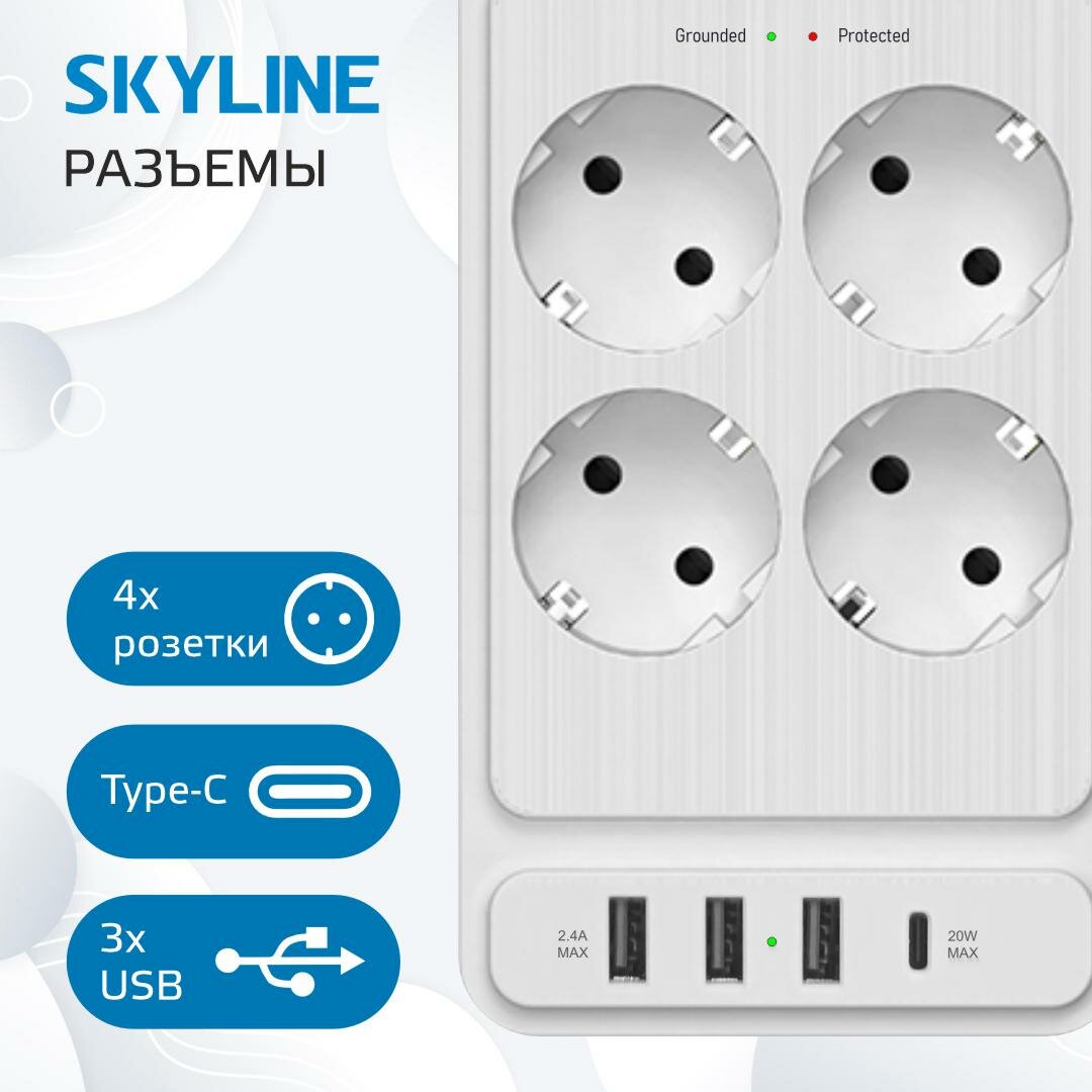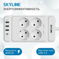 Сетевой фильтр SKYLINE USP-430, 4 розетки, 3 USB + 1 type-C, power delivery, кабель 3 метра, 4000 Вт, 16А, белый: сравнение цен, характеристики, фото, актуальное наличие и цены.