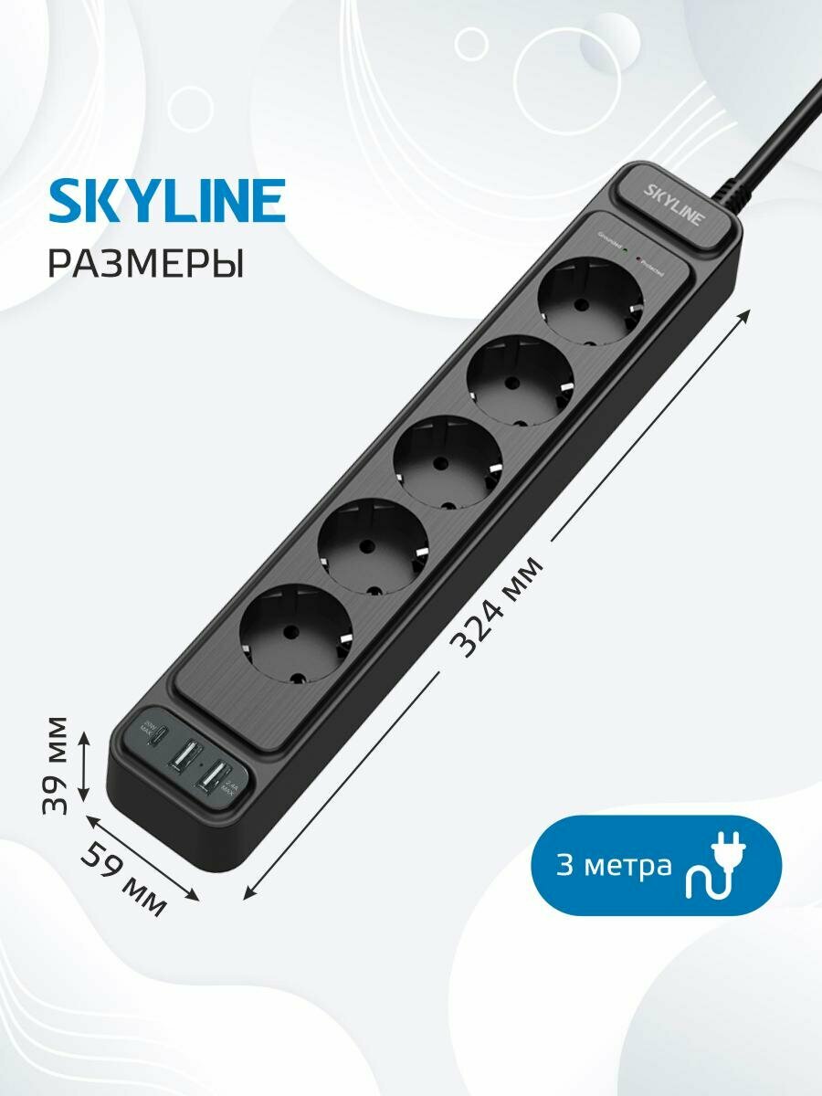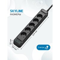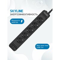 Сетевой фильтр SKYLINE USP-530, 5 розеток, 2 USB + 1 type-C, power delivery, кабель 3 метра, 4000 Вт, 16А, черный: сравнение цен, характеристики, фото, актуальное наличие и цены.
