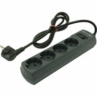Тип: Сетевой фильтр; Цвет: черный; Длина кабеля: 1.8 м; Входная вилка: Евро-вилка; Количество розеток: 4 розетки; Расположение выходных розеток: сверху; Шторки на розетках: нет; Отдельный выключатель для каждой розетки: нет; Максимальный ток нагрузки: 15 А; Максимальная выходная мощность: н/д; Функции защиты подключаемых устройств: от короткого замыкания от перегрузки; Входное напряжение: 220 В; Выходное напряжение: 220 В; Индикация: н/д; ЖК-дисплей: нет; Кабелеукладчик: нет; Возможность крепления к стене: н/д; Прочие особенности и свойства: Частота сети, Гц 50, Максимальный импульскный ток помехи, А 10000, Подавление импульсных помех (4кВ, 5/50 нс), раз 8, Подавление импульсных помех (4кВ, 1/50 мкс), раз 3, Максимальная рассеиваемая энергия, Дж 150; Размеры: н/д; Особенности: защита от короткого замыкания, защита от перегрева; Мощность: 3300 VA