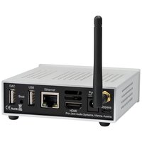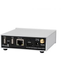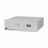 Сетевой аудио-проигрыватель Pro-Ject Stream Box S2 Ultra для работы с цифровыми потоками практически любого происхождения и способа передачи. имеет Bluetooth и AirPlay. Аппарат может воспроизводить файлы с носителей USB и серверов в локальной сети, работать по протоколам UPnP и DLNA, принимать интернет-радио или выступать в качестве клиента стриминговых сервисов Tidal, Spotify и Qobuz. Для управления можно использовать мобильное приложение (для iOS и Android). Сетевое подключение как по Ethernet, так и через Wi-Fi. Собственного ЦАПа не имеет и работает исключительно в связке с внешним конвертором. Также данное устройство может выполнять функцию очистки цифрового сигнала отп