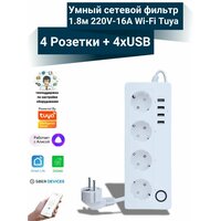 Купить Сетевой Умный Wi-Fi фильтр 4 Розетки + 4хUSB (1.8м, 220V-16A) с доставкой по всей России. Сетевой Умный Wi-Fi фильтр 4 Розетки + 4хUSB (1.8м, 220V-16A): сравнение цен, характеристики, фото, актуальное наличие и цены.