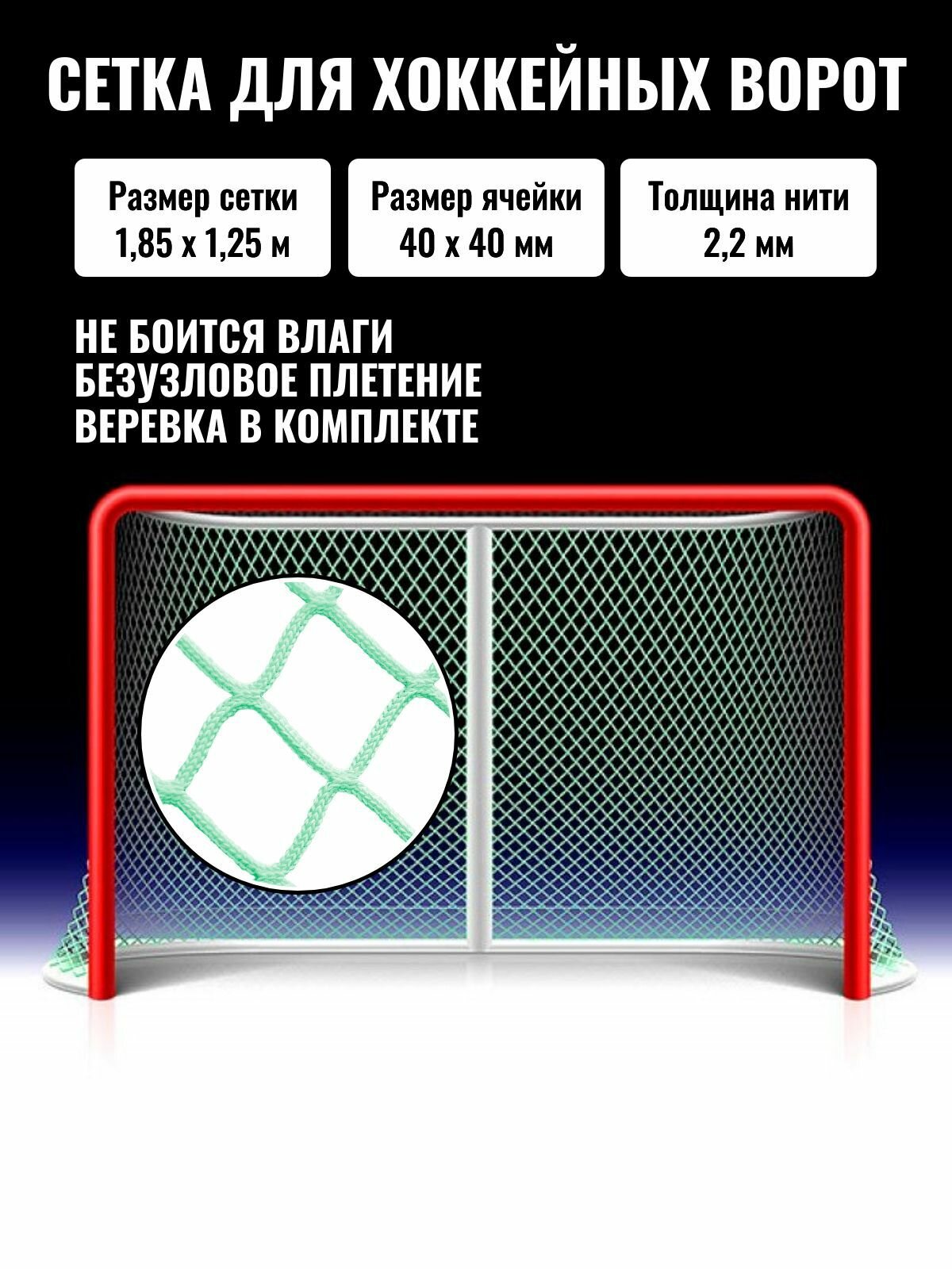 Купить Сетка для хоккейных ворот 1,85 х 1,25 м нить 2,2 мм с доставкой по всей России. Сетка для хоккейных ворот 1,85 х 1,25 м нить 2,2 мм: сравнение цен, характеристики, фото, актуальное наличие и цены.