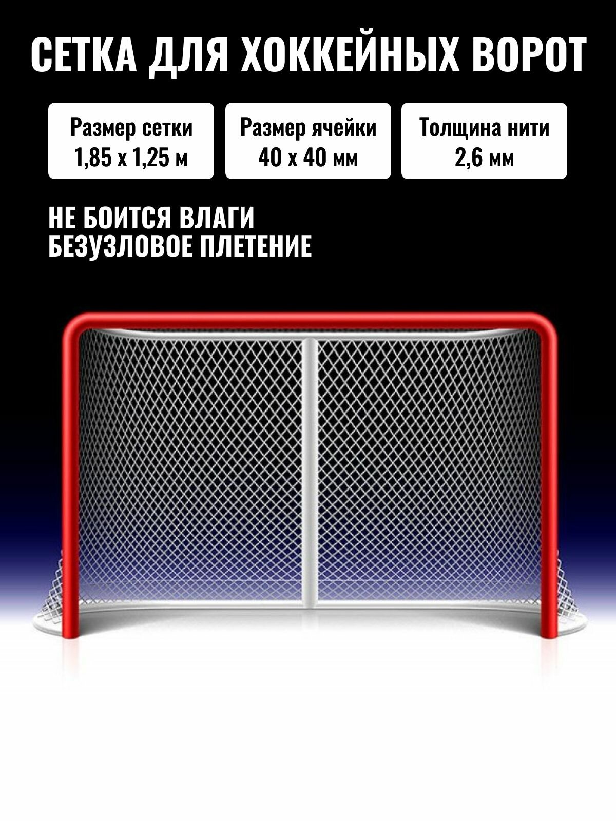 Купить Сетка для хоккейных ворот 1,85 х 1,25 м нить 2,6 мм с доставкой по всей России. Сетка для хоккейных ворот 1,85 х 1,25 м нить 2,6 мм: сравнение цен, характеристики, фото, актуальное наличие и цены.