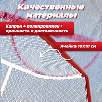 Сетка для хоккея 1,85х1,25 х 0,7х1,3 м. Размер ворот 1,85*1,25 и глубина верха и низа 0,7 и 1,3 метра соответственно. Не тлеет и не плавится на солнце, не гниет и не деформируется после намокания. Шьется по безузловой технологии, благодаря чему обеспечивается дополнительная износостойкость и надежность. Предназначена для игры в хоккей в помещении и на улице на открытом поле. Уличная сетка изготавливается из смеси капрона и полипропилена, поэтому устойчива к солнечному излучению и влаге. Мы стараемся предоставить лучший спортивный инвентарь по доступным ценам, поэтому не дополняем товар ненужными аксессуарами. Вся стоимость заложена исключительно в качество изделия. Ячейка 4 на 4 см. Края оверлочены. Вес 0,7 кг. Реализуется поштучно. Способ крепления - веревка (в комплекте). На странице нашего магазина СпортПик Вы также можете найти варианты другой толщины нити и сетки для любых других видов спорта.