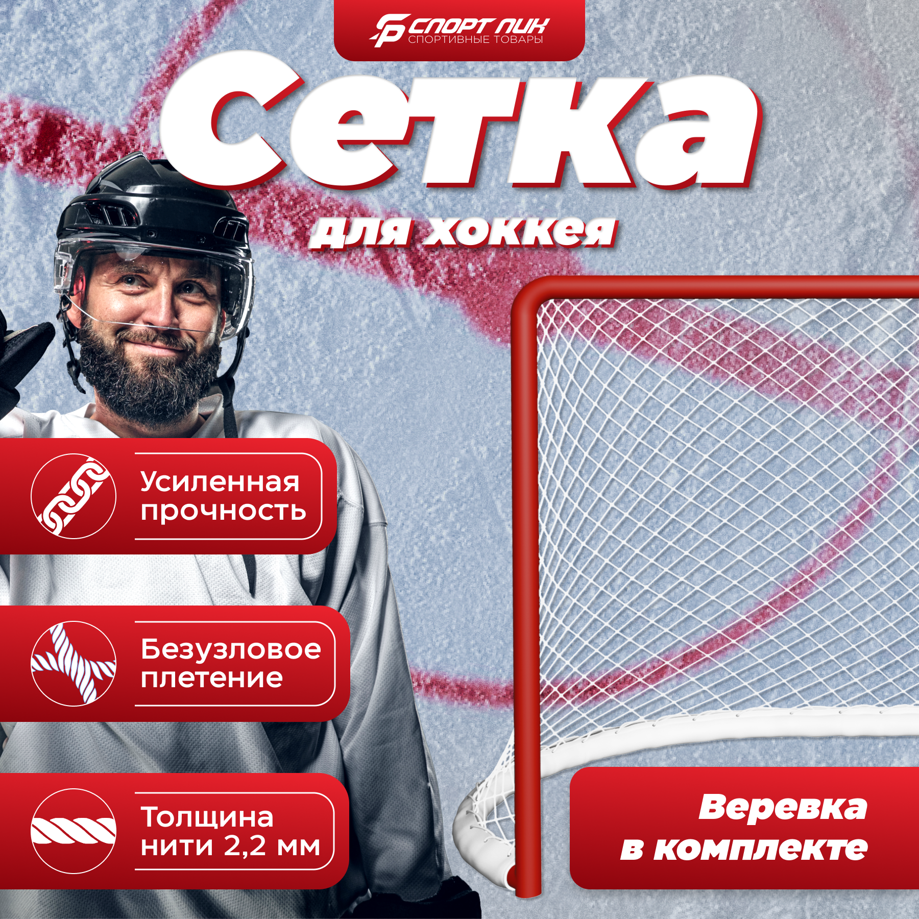 Купить Сетка для хоккейных ворот 1,85 на 1,25 нить 2,2 мм веревка в комплекте с доставкой по всей России. Сетка для хоккейных ворот 1,85 на 1,25 нить 2,2 мм веревка в комплекте: сравнение цен, характеристики, фото, актуальное наличие и цены.