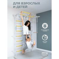 Установка шведской стенки осуществляется к стене, что обеспечивает надежность и безопасность использования. Максимальная нагрузка на навесное оборудование составляет 50 кг, а на турник - 100 кг.