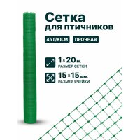 Купить Сетка для птичников пластиковая 1×20м 15х15мм, зеленая 45гр/м2 садовая, для забора, для клеток, от птиц 4620214453957 с доставкой по всей России.
