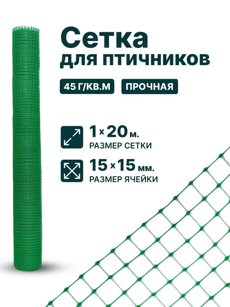 Сетка для птичников пластиковая 1×20м 15х15мм, зеленая 45гр/м2 садовая, для забора, для клеток, от птиц 4620214453957: сравнение цен, характеристики, фото, актуальное наличие и цены.