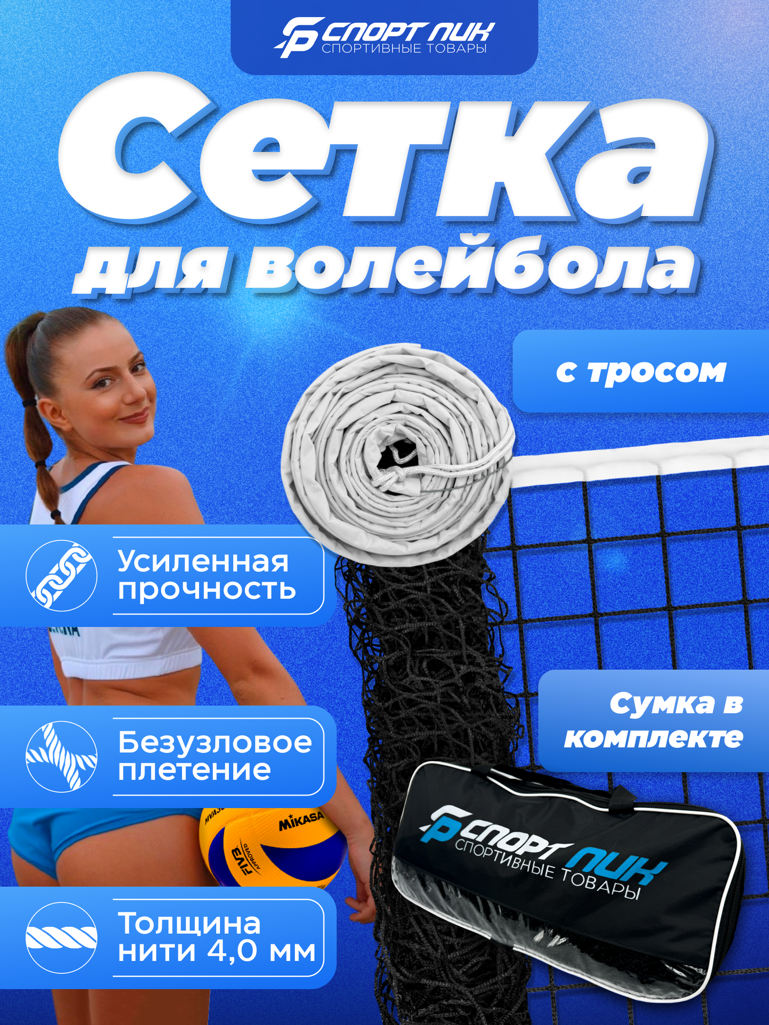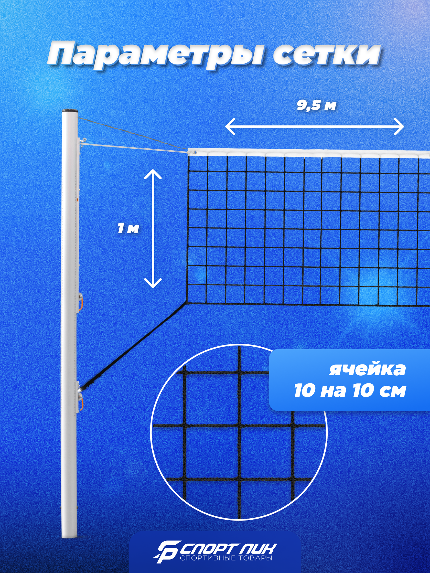 Сетка для волейбола СпортПик с сумкой и тросом, 9.5×1 м, черная, нить 4 мм.: сравнение цен, характеристики, фото, актуальное наличие и цены.