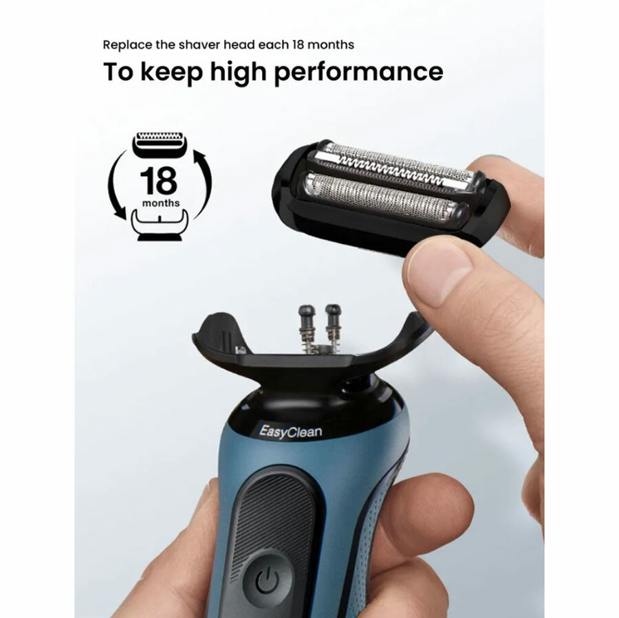 Сетка очень проста в использовании, что сделает ваше бритье еще комфортнее. В среднем за 18 месяцев бритва Braun срезает 6 000 000 волосков. Это значит, что головка будет постепенно изнашиваться, и бритье со временем станет менее гладким и комфортным. Поэтому компания Braun рекомендует менять бреющую сетку и режущий блок каждые 18 месяцев для поддержания оптимальной эффективности бритья.