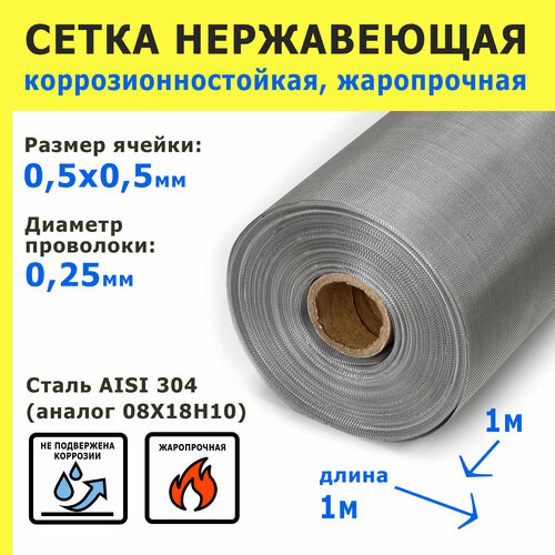 Сетка нержавеющая 0,5х0,5х0,25 мм для фильтрации, очистки. Cталь AISI 304 (08Х18Н10). Размер 1х1 метр.: сравнение цен, характеристики, фото, актуальное наличие и цены.