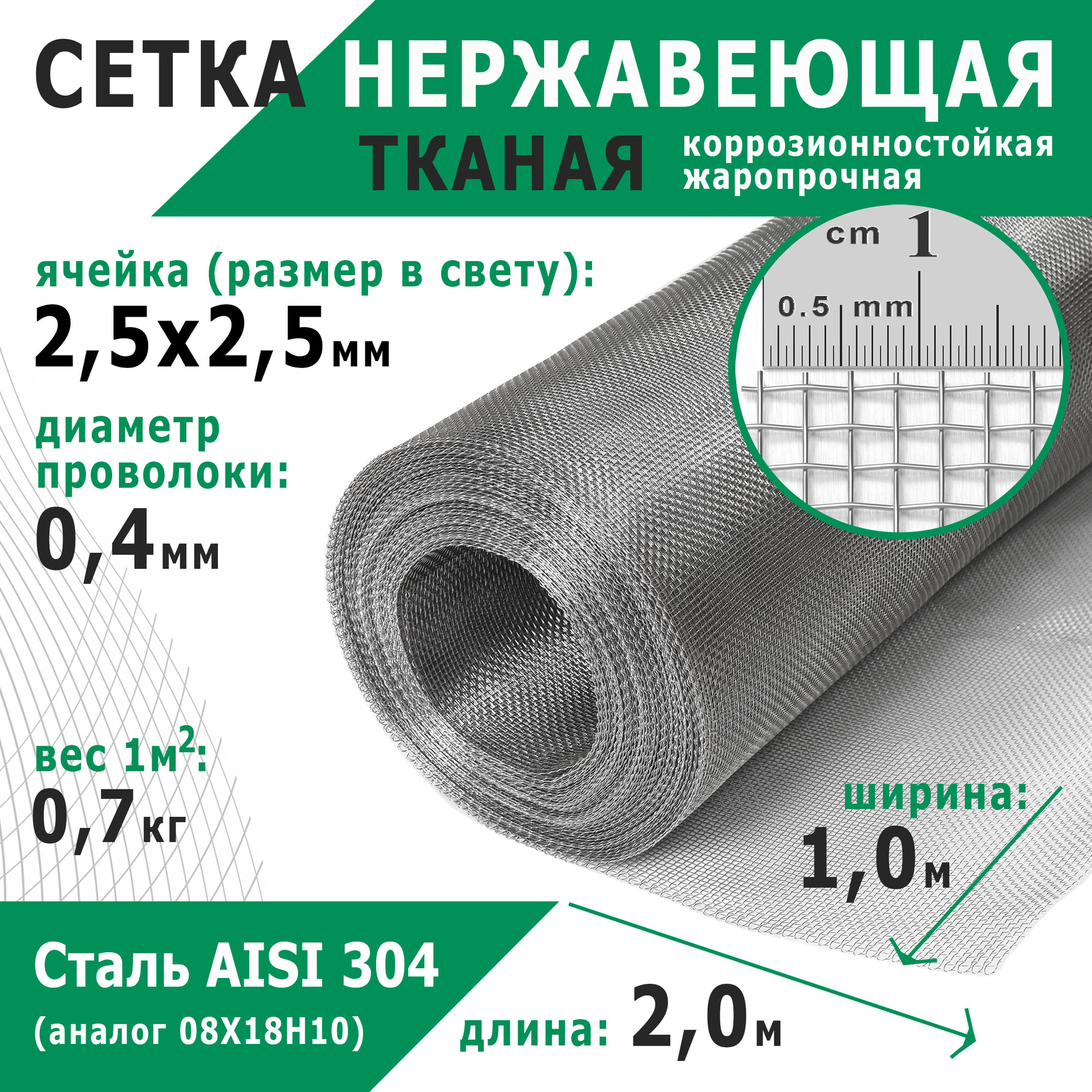 Тканая нержавеющая сетка представляет собой переплетенную стальную проволоку в виде квадратных отверстий. Сетка широко используется как в бытовых условиях, так и в промышленных целях, проста в монтаже и легко режется. Основным преимуществом нержавеющей стали является ее коррозионная стойкость, жаростойкость и высокая степень пластичности.