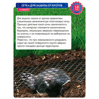Пластиковая сетка для защиты от кротов, грызунов и землероеек Протэкт 1*10м, ячейка 0,9*0,9 см, толщина нити 1,2 мм. Защитная сетка от кротов в саду – это пластиковая конструкция размером 1х10 метров - наиболее гуманное и действенное средство для борьбы с кротами и грызунами на приусадебном участке.