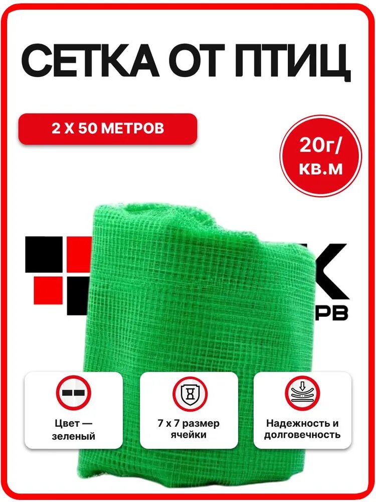 Сетка от птиц пластиковая 2х50м 7х7мм зеленая 20гр/м2, садовая сетка, на клубнику 4620214450055: сравнение цен, характеристики, фото, актуальное наличие и цены.