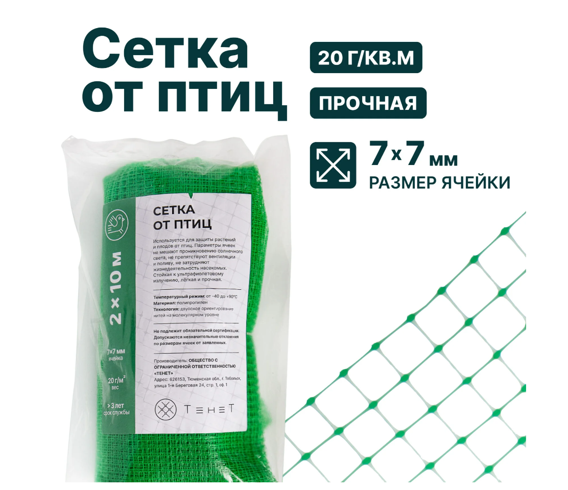 Выбирая сетку от птиц ячейка 7х7мм, 20гр/м2, 2х10м садовая 4620214450048, вы обеспечиваете своим растениям надежную защиту от птиц и сохраняете урожай.