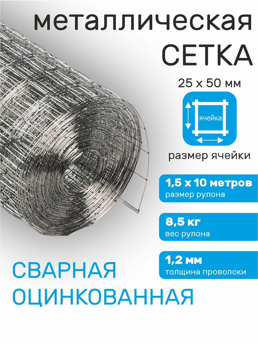 Сетка оцинкованная сварная заборная строительная ячейка 25 х 50 мм d=1,2 мм (рулон 1,5 х 10 м): сравнение цен, характеристики, фото, актуальное наличие и цены.