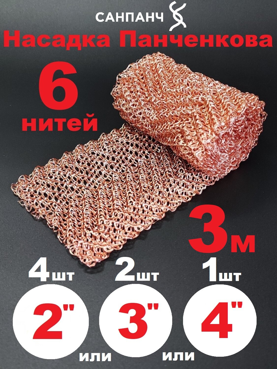 Насадка Панченкова на 6 нитей медная, Одной длиной 3 метра, Ширина 10 см, Вес от 160 гр/м, Чистая российская медь ММ, Диаметр проволоки 0,15 мм, Гофрирование двойная ёлочка.