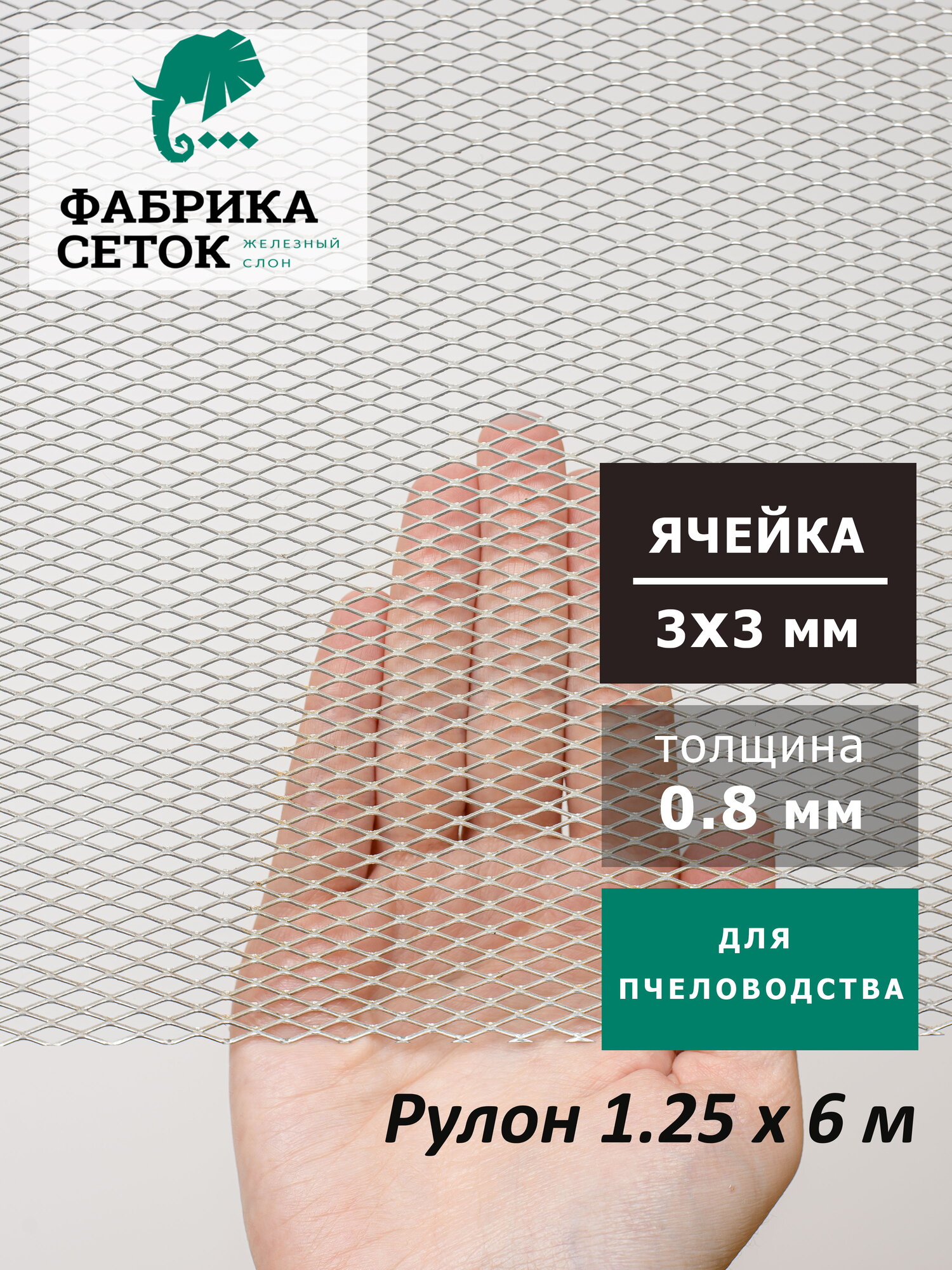 Просечно-вытяжная ПВС сетка с перемычкой 0.5х0.8мм, рулон 1.25х6м.