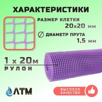 Купить Сетка садовая 1х20, ячейка 20х20мм, фиолетовая с доставкой по всей России. Сетка садовая 1х20, ячейка 20х20мм, фиолетовая: сравнение цен, характеристики, фото, актуальное наличие и цены.