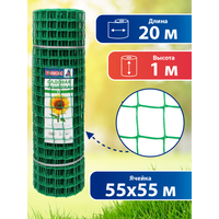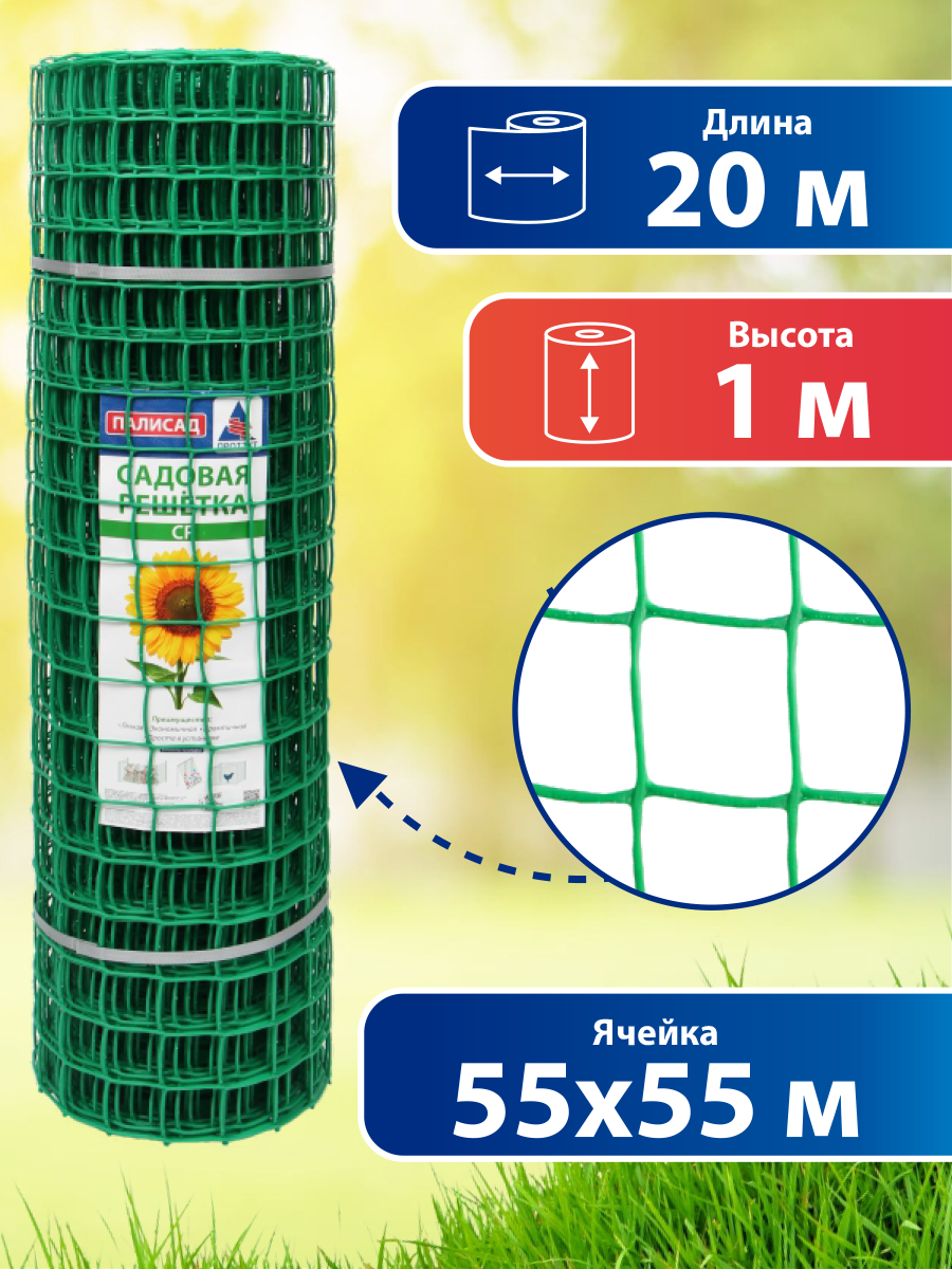Размер сетки — 1 на 20 метров, размер ячейки — 55 на 55 мм, толщина нити — 2,9 мм.