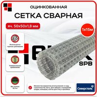 Купить Сетка сварная оцинкованная 1х15м яч. 50х50 d1,8 мм / для забора, для сада, строительная с доставкой по всей России.
