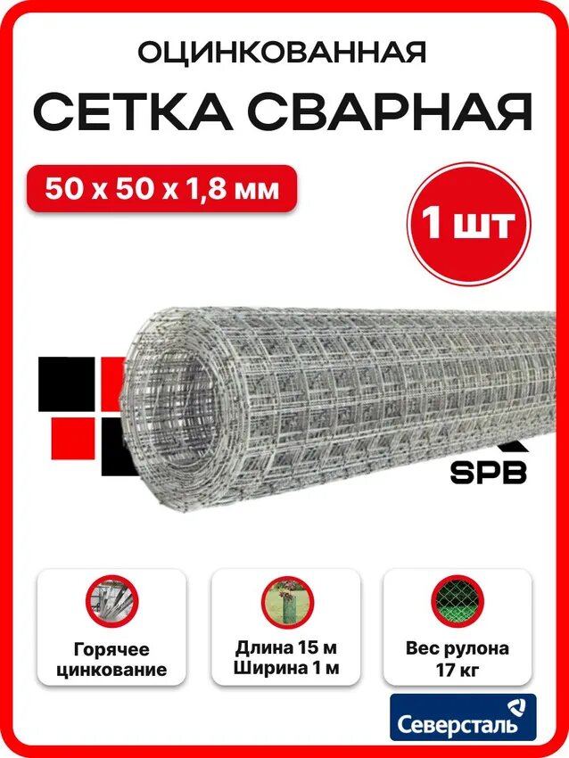 Сетка сварная оцинкованная 1х15м яч. 50х50 d1,8 мм / для забора, для сада, строительная: сравнение цен, характеристики, фото, актуальное наличие и цены.