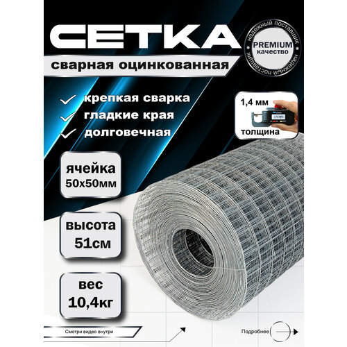 Купить Сетка сварная оцинкованная 50х50х1,4мм строительная (ячейка 50х50мм, d-1,4мм, рулон 1х50м, высота 51см) PREMIUM с доставкой по всей России. Сетка сварная оцинкованная 50х50х1,4мм строительная (ячейка 50х50мм, d-1,4мм, рулон 1х50м, высота 51см) PREMIUM: сравнение цен, характеристики, фото, актуальное наличие и цены.
