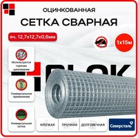 Сетка сварная оцинкованная яч. 12,7х12,7х0,6мм 1х15м кладочная, от грызунов, для сада и строительства
