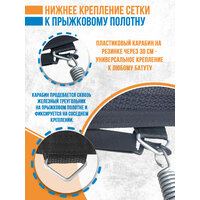 Продаётся не батут, а сетка для батута! Сетка подходит для батута 15 футов (диаметр металлического каркаса батута 460 см) с 10 стойками. Тип крепления сетки – сетка внутренняя, т. е. при установке ее на батут, нижнее крепление сетки осуществляется в край прыжкового полотна батута при помощи 41 пластиковых карабинов на резинках, что обеспечивает максимально плотное прилегание к полотну. Окружность сетки 1260 см, рассчитана на прыжковое плотно диаметром 400 см. Сетка имеет регулировку высоты от 160 до 175 см за счет регулируемых верхних креплений. Данная сетка имеет 10 верхних креплений, что идеально подходит для батута с 10 стойками. Вход в сетку самозакрывающийся клапан. Клапан – это нахлест одного края сетки на другой на 40 см. Самозакрывающийся клапан не даст полотну сетки распахнуться и прыгающий человек не выпадет из батута. Данный вход в сетку всегда закрыт, что подходит для самых маленьких детей, которые не могут или забывают закрыть молнию. Материал изделия: сетка 100% полиэстер плотностью 260 гр/м. Материал с повышенной плотностью увеличивает срок эксплуатации сетки, защищает ее от воздействия ультрафиолета и осадков. Защитная сетка должна быть упругой, плотной, с частыми мелкими ячейками. Сетка из которой произведено изделие мелкоячеистая 3мм. Такие ячейки защитят от травм. Вы имеете возможность купить качественный продукт напрямую от российского производителя Tubing-store, изготовление и производство различных аксессуаров для батута находится в Москве. В нашем ассортименте есть защитные сетки для всех размеров батутов.