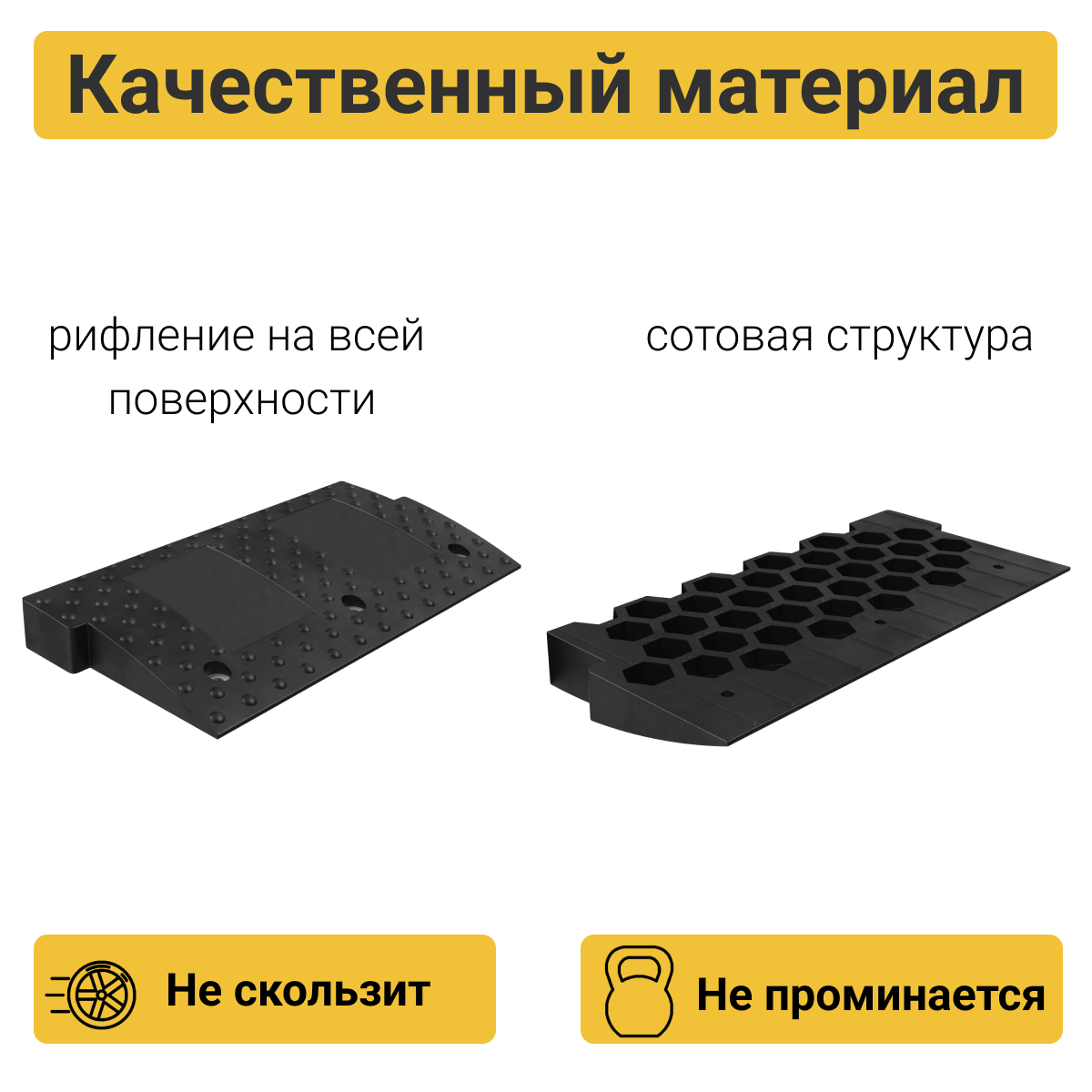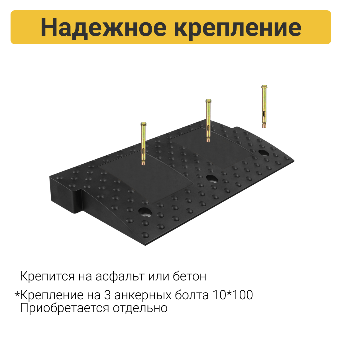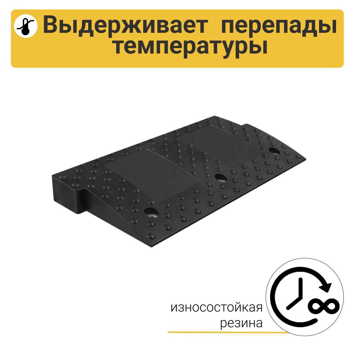 Материал изготовления: Резина Длина вдоль бордюра: 500 мм Ширина от бордюра: 250 мм Высота: 58 мм Количество крепёжных отверстий: 3 шт. Температура эксплуатации: От -50°C до +60°C Масса: 6 кг Цвет: Чёрный