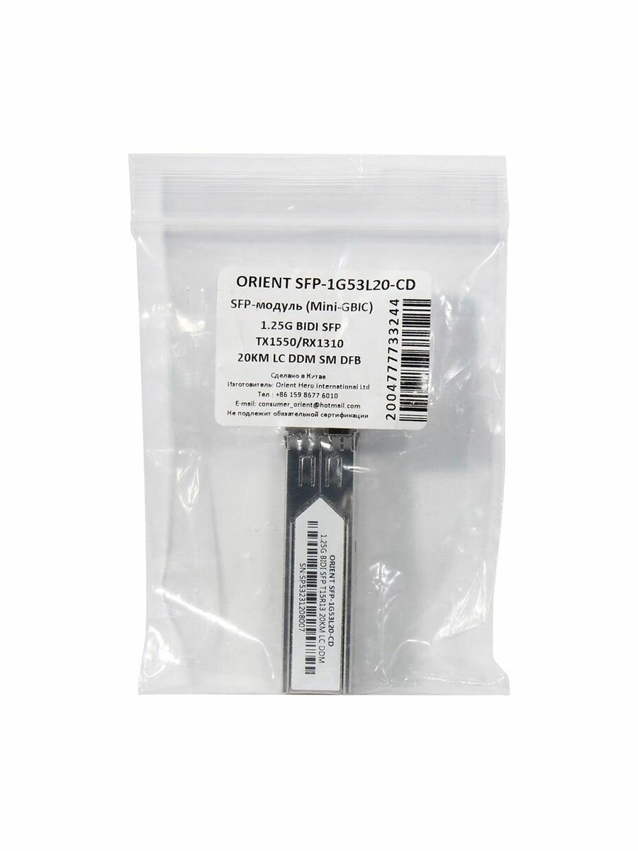 Купить SFP-модуль (Mini-GBIC) оптический трансивер 1.25G BIDI SFP TX1550/RX1310 20KM LC DDM SM DFB (ORIENT SFP-1G53L20-CD) с доставкой по всей России.
