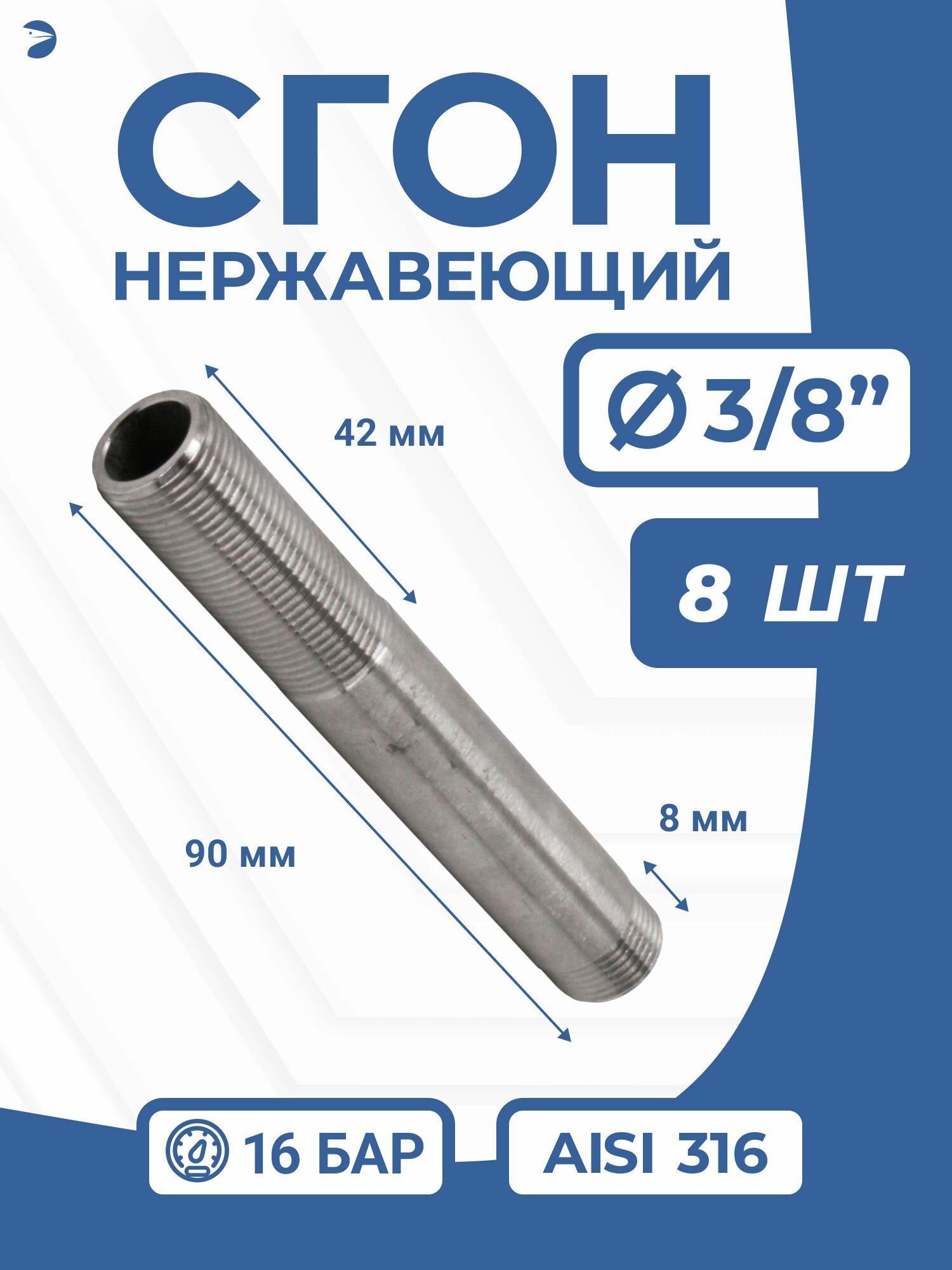 Сгон (двойной ниппель) нержавейка Ду 10 (3/8 дюйма), AISI 316 PN16, набор 8 шт: сравнение цен, характеристики, фото, актуальное наличие и цены.