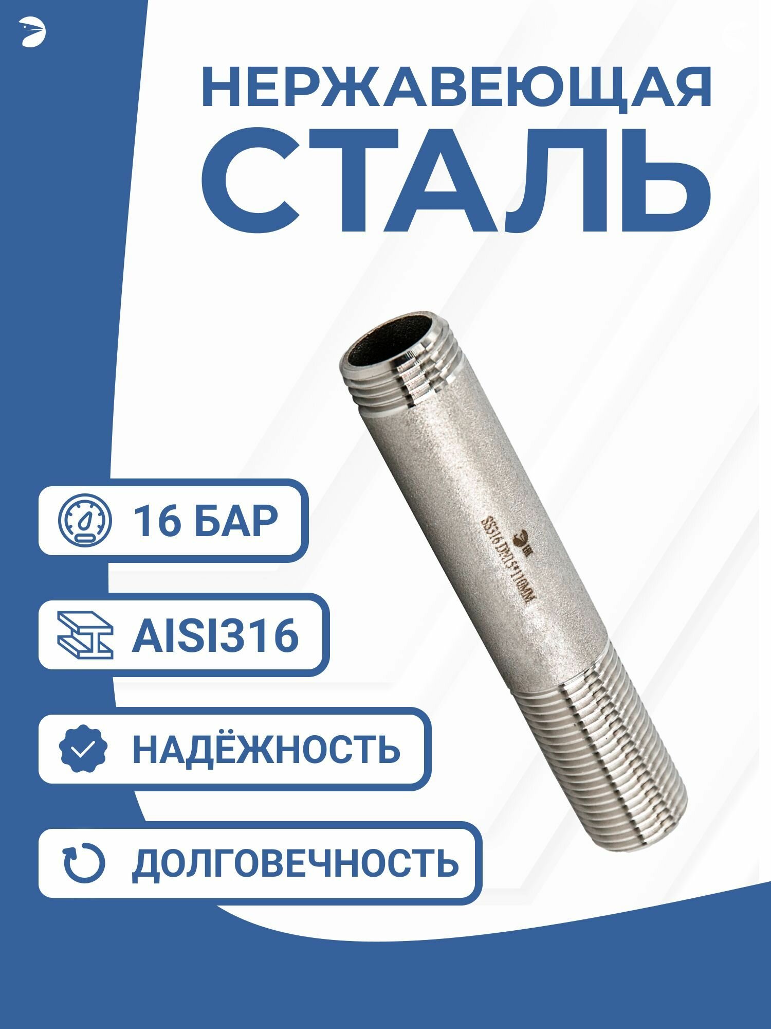 Сгон (двойной ниппель) нержавейка Ду 25 (1 дюйм), AISI 316 PN16 набор 8 шт: сравнение цен, характеристики, фото, актуальное наличие и цены.