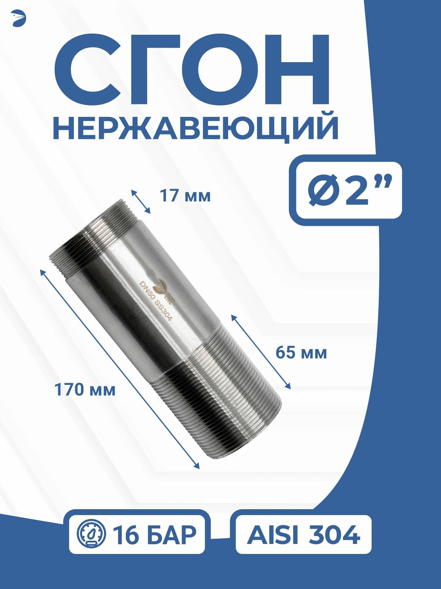 Купить Сгон (двойной ниппель) нержавейка Ду 50 (2 дюйма), AISI 304 PN16 с доставкой по всей России. Сгон (двойной ниппель) нержавейка Ду 50 (2 дюйма), AISI 304 PN16: сравнение цен, характеристики, фото, актуальное наличие и цены.