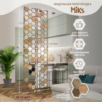 Подвесная Ширма перегородка ( 12 шт Панелей матриц цветом Дуб Крафт табачный, 74 шт досочки соты цветом : Дуб Крафт серый, Дуб Сономо светлый, Дуб Винтаж платина) Хотите стильный современный и уникальный интерьер в своей квартире, доме, ресторане или офисе? Не знаете как зонировать пространство в своей гостиной, спальне, кухне, в кабинете или детской комнате, чтобы это было красиво, функционально и недорого? Компания Микс знает решение. Декоративный элемент мебели для визуального зонирования пространства – подвесная ширма это декоративная перегородка, сделанная из высококачественных материалов, имитирующих дерево разных пород. Ширма для зонирования пространства имеет отменные эстетические качества, благодаря чему служит настоящим украшением интерьера, подчеркивая стиль и элегантность оформления. Подвесная ширма, перегородка для зонирования комнаты имеет основную матрицу, толщиной 6 мм, а также дополнительные дощечки, толщиной 3 мм с двух сторон, которые придают 3D объём перегородки, благодаря чему ширма для зонирования пространства от компании Микс выглядит стильно, красиво и современно и подойдет в любой интерьер. Ширма состоит из 18 штук панелей-матриц, размером 38*38 см и из 108 штук досочек, которые имеют три разных цвета, имитирующие дерево разных пород, по 36 штук каждого цвета для самостоятельного создания своей индивидуальной ширмы. Проявите свою фантазию и создайте уникальный индивидуальный дизайн своей ширме! Если четко следовать по инструкции, то перегородка очень легко и быстро собирается. В комплект уже входит качественный клей для досочек и основной крепёж для монтажа перегородки к деревянному или бетонному потолку. Вы также можете приобрести в нашем магазине дополнительный крепёж для монтажа к подвесному потолку без закладной, армстронгу или к гипсокартону, а также приобрести цепи для увеличения длины ширмы для зонирования комнаты. Если требуются дополнительные панели, то их можно отдельно докупить. Минимальное количество 6 шт. Цвета и артикулы : Ш-6/ДСС Дуб сонома светлый; Ш-6/ДКС Дуб крафт серый; Ш-6/ДКТ Дуб крафт табачный; Ш-6/ДКБ Дуб крафт белый; Ш-6/ДВП Дуб винтаж платина. Красивые и качественные декоративные ширмы от Микс впишутся в любой интерьер дома, квартиры, дачи. Интерьерные перегородки - ширмы будут стильно смотреться в ресторане, салоне красоты, в медицинских учреждениях, в офисе, в детском саду и других пространствах. Размеры ширмы в сборе с зазорами, 12 шт ( 6шт* 2шт): Высота 2 м 40 см * Ширина 77 см Материал лхдф имитация ценных пород дерева Размер изделия Длина 24 см, ширина 77 см, толщина 12 мм