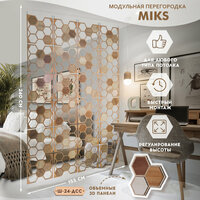 Подвесная Ширма перегородка .24 шт Панелей матриц цветом Дуб Сонома Светлый, 144 шт досочки соты цветом : Дуб Крафт серый, Дуб Крафт Табачный, Дуб Винтаж платина) Хотите стильный современный и уникальный интерьер в своей квартире, доме, ресторане или офисе? Не знаете как зонировать пространство в своей гостиной, спальне, кухне, в кабинете или детской комнате, чтобы это было красиво, функционально и недорого? Компания Микс знает решение. Декоративный элемент мебели для визуального зонирования пространства – подвесная ширма это декоративная перегородка, сделанная из высококачественных материалов, имитирующих дерево разных пород. Ширма для зонирования пространства имеет отменные эстетические качества, благодаря чему служит настоящим украшением интерьера, подчеркивая стиль и элегантность оформления. Подвесная ширма, перегородка для зонирования комнаты имеет основную матрицу, толщиной 6 мм, а также дополнительные дощечки, толщиной 3 мм с двух сторон, которые придают 3D объём перегородки, благодаря чему ширма для зонирования пространства от компании Микс выглядит стильно, красиво и современно и подойдет в любой интерьер. Ширма состоит из 24 штук панелей-матриц, размером 38*38 см и из 144 штук досочек, которые имеют три разных цвета, имитирующие дерево разных пород, по 48 штук каждого цвета для самостоятельного создания своей индивидуальной ширмы. Проявите свою фантазию и создайте уникальный индивидуальный дизайн своей ширме! Если четко следовать по инструкции, то перегородка очень легко и быстро собирается. В комплект уже входит качественный клей для досочек и основной крепёж для монтажа перегородки к деревянному или бетонному потолку. Вы также можете приобрести в нашем магазине дополнительный крепёж для монтажа к подвесному потолку без закладной, армстронгу или к гипсокартону, а также приобрести цепи для увеличения длины ширмы для зонирования комнаты. Если требуются дополнительные панели, то их можно отдельно докупить. Минимальное количество 6 шт. Цвета и артикулы : Ш-6/ДСС Дуб сонома светлый; Ш-6/ДКС Дуб крафт серый; Ш-6/ДКТ Дуб крафт табачный; Ш-6/ДКБ Дуб крафт белый; Ш-6/ДВП Дуб винтаж платина. Красивые и качественные декоративные ширмы от Микс впишутся в любой интерьер дома, квартиры, дачи. Интерьерные перегородки - ширмы будут стильно смотреться в ресторане, салоне красоты, в медицинских учреждениях, в офисе, в детском саду и других пространствах. Размеры ширмы в сборе с зазорами, 24 шт ( 6шт* 4шт): Высота 2 м 40 см * Ширина 1м 55 см Материал лхдф имитация ценных пород дерева Размер изделия Длина 240 см, ширина 155 см, толщина 12 мм