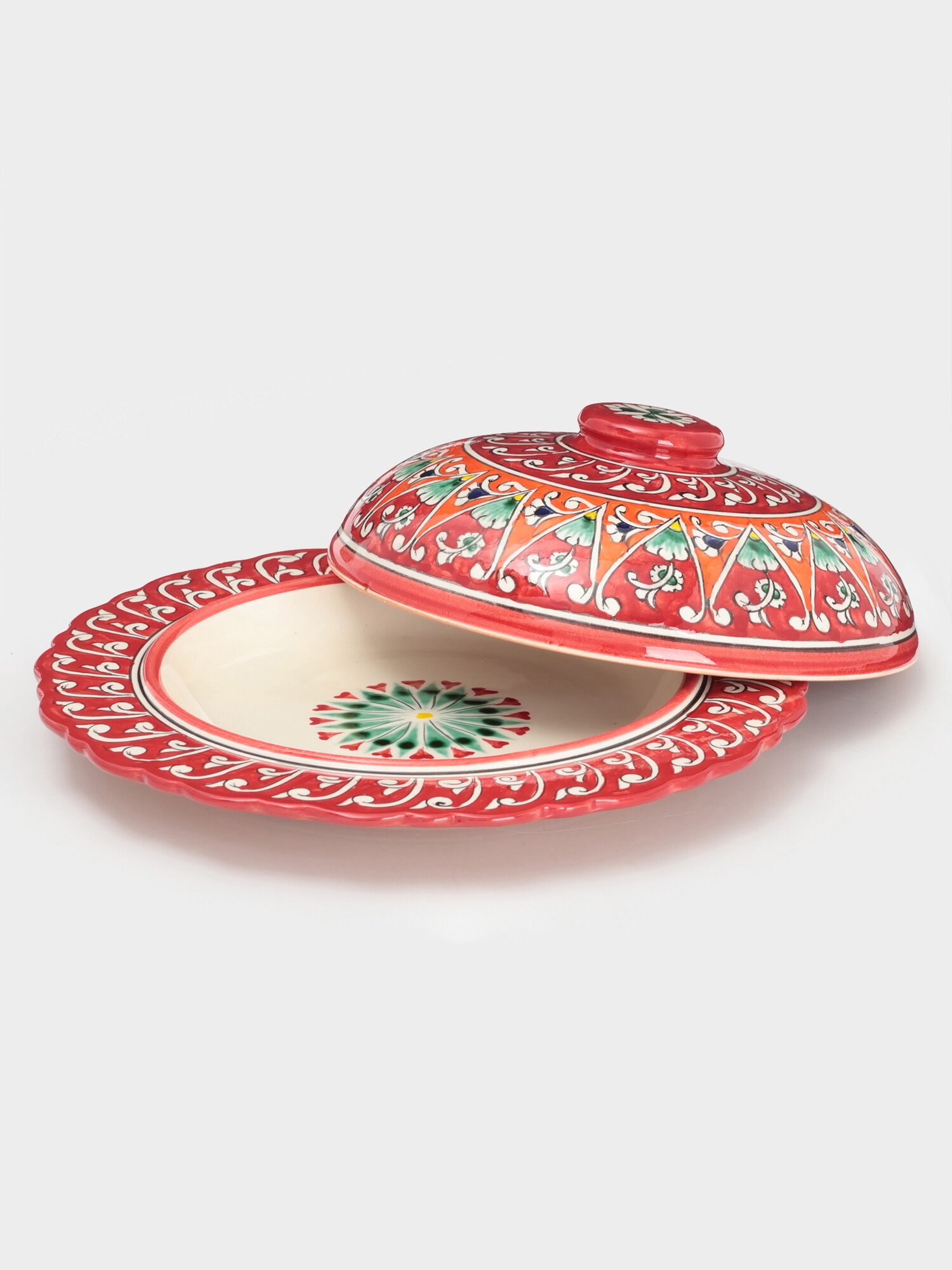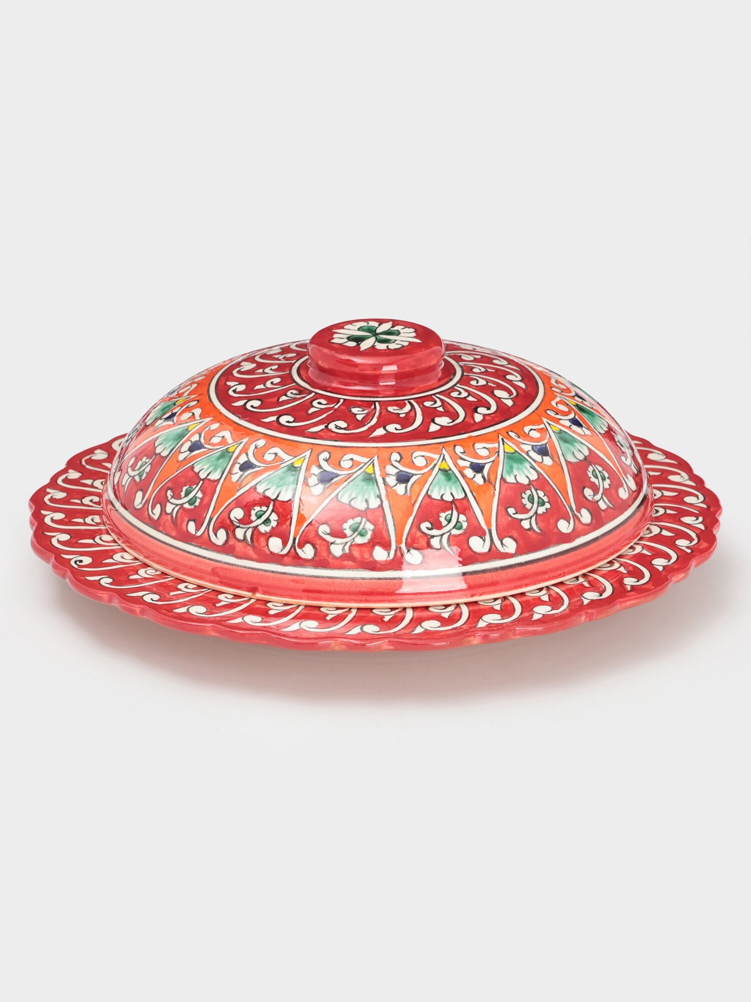 Блинница Риштанская Керамика "Цветы", 24 см, красный