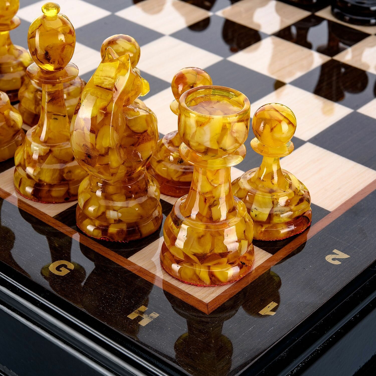 Купить Шахматный ларец с янтарными фигурами 48х48 см с доставкой по всей России.
