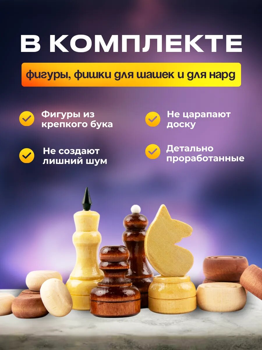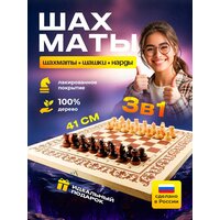 Купить Шахматы 3 в 1 деревянные классические с доской 41х41, комплект шашки и нарды с доставкой по всей России.