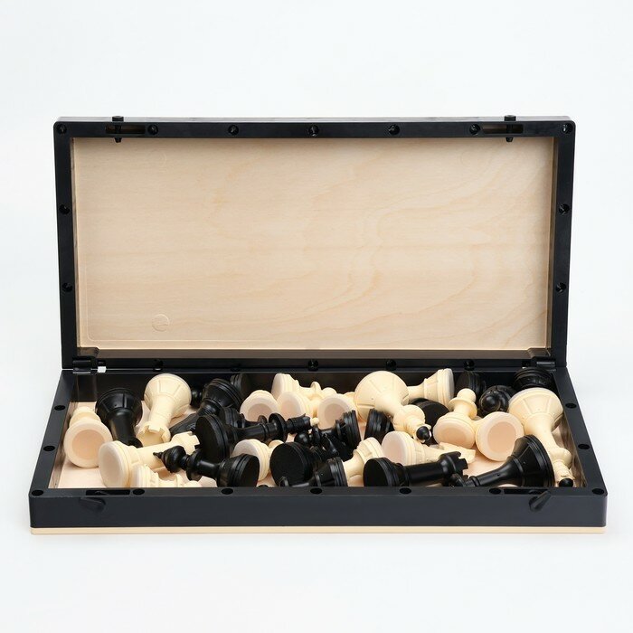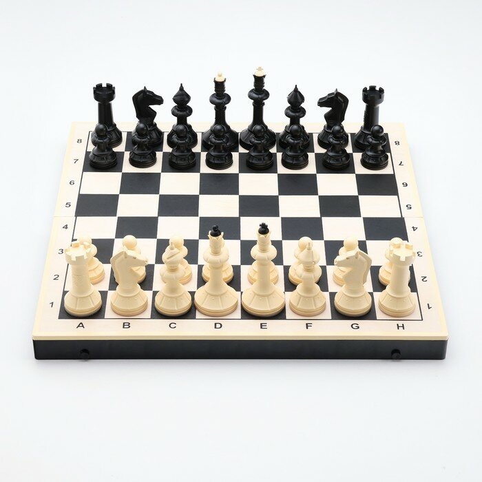 • В наборе:- пластиковая шахматная доска с деревянным покрытием (40х40 см.)- шахматы - 32 фигуры из пластмассового композита.• Соответствует требованиям безопасности продукции.• Для детей от 3-х лет.