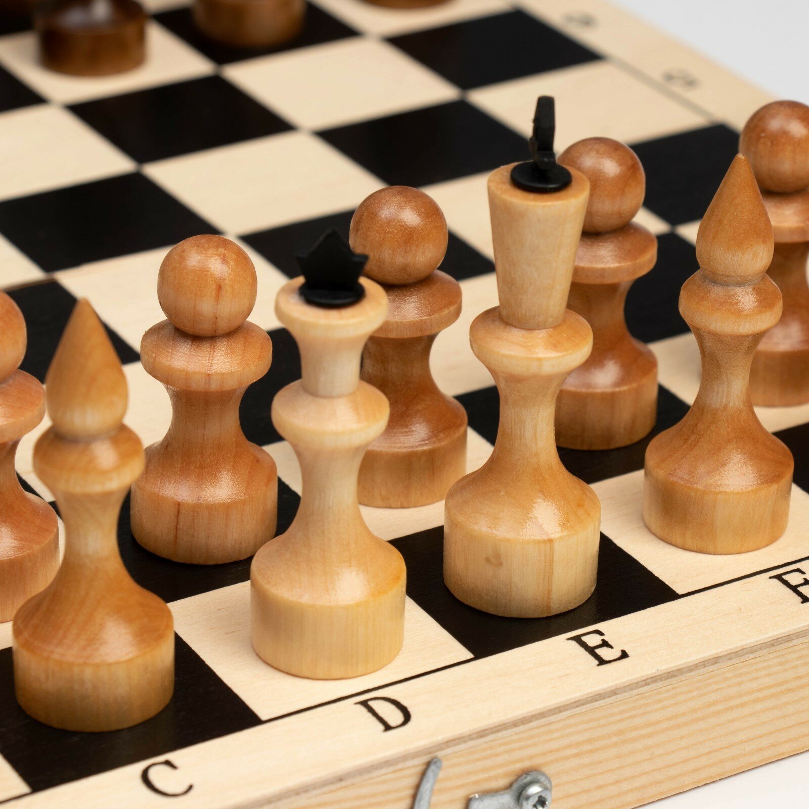 Шахматы – это настольная игра, в которую могут играть как дети, так и взрослые, они могут быть использованы в качестве развивающей игрушки для детей, а для взрослых они могут стать увлекательным хобби. Обиходные шахматы способствуют развитию фантазии и концентрации внимания, учат стратегически мыслить и тренируют усидчивость.Шахматная деревянная лакированная доска из качественных пиломатериалов: каркас выполнен из сосны, поле - берёзовая фанера. Размер доски в разложенном виде 29 х 29 см. Доска имеет аккуратную и надежную фурнитуру и вместительный отсек для хранения.Фигуры приятно и удобно держать в руке. Они выполнены из высококачественного экологически чистого дерева, покрыты лаком, что обеспечивает привлекательный внешний вид и длительный срок службы.Такой набор подойдёт для школьников, студентов, в кружках и секциях, для турниров и соревнований.Играть в интеллектуальные игры можно где угодно: дома, в школе, в компании, с друзьями, родителями, детьми.