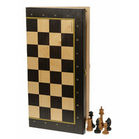 Складная конструкция доски позволяет удобно хранить шахматы на книжной полке или брать их с собой в дорогу. Размер игрового поля составляет 50х50 см, а размер клетки – 50 мм. Высота короля – 105 мм, основание – 45 мм, высота пешки – 52 мм, основание – 30 мм.