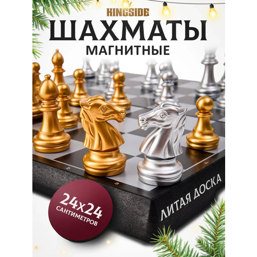 Шахматы магнитные KINGSIDE представляют собой классический шахматный набор золотистого и серебристого цвета, выполненный из высококачественных материалов - ABS-пластика, металла и бархата.