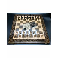 Шахматы + нарды авторские 3 в 1 "Элегант-1" большие 50см. из прочного долговечного Дерева Бук, максимальная комплектация. Шахматные фигуры авторские с подложкой, из орехового дерева. Замки дизайнерские из бронзы. Состояние: Новое; Упаковка: Чехол; Материал: Бук; Страна производитель: РФ, Армения: Размер в закрытом состоянии (Д x Ш x В) (см) 50х25х6; Размер в открытом состоянии (Д x Ш x В) (см) 50х50х3; Размер игровой площадки 32х32 см. Высота Короля 9 см, диаметр 2,7 см. Высота пешки 4 см, диаметр 2,2 см; Тип Шахматной Доски: Складные; Материал Фигур: Бук; Фигуры с подложкой: Да; Гарантия: 3 года. шахматы деревянные / шахматы шашки /шахматы нарды/шахматы коллекционные /шахматы стольные/нарди / шашки / шахматы 50см /шахмат подарочные/подарок на день рождения/подарок начальнику / нарды армянские/ шашки / шахматы нарды/ шахматы 3в1 / нарды маленькие / шахматы с ручкой / шахматы резные/ шахматы русские/ шахматы Элегант/ подарок на 9 мая /подарок 8 марта/подарок на 9 мая