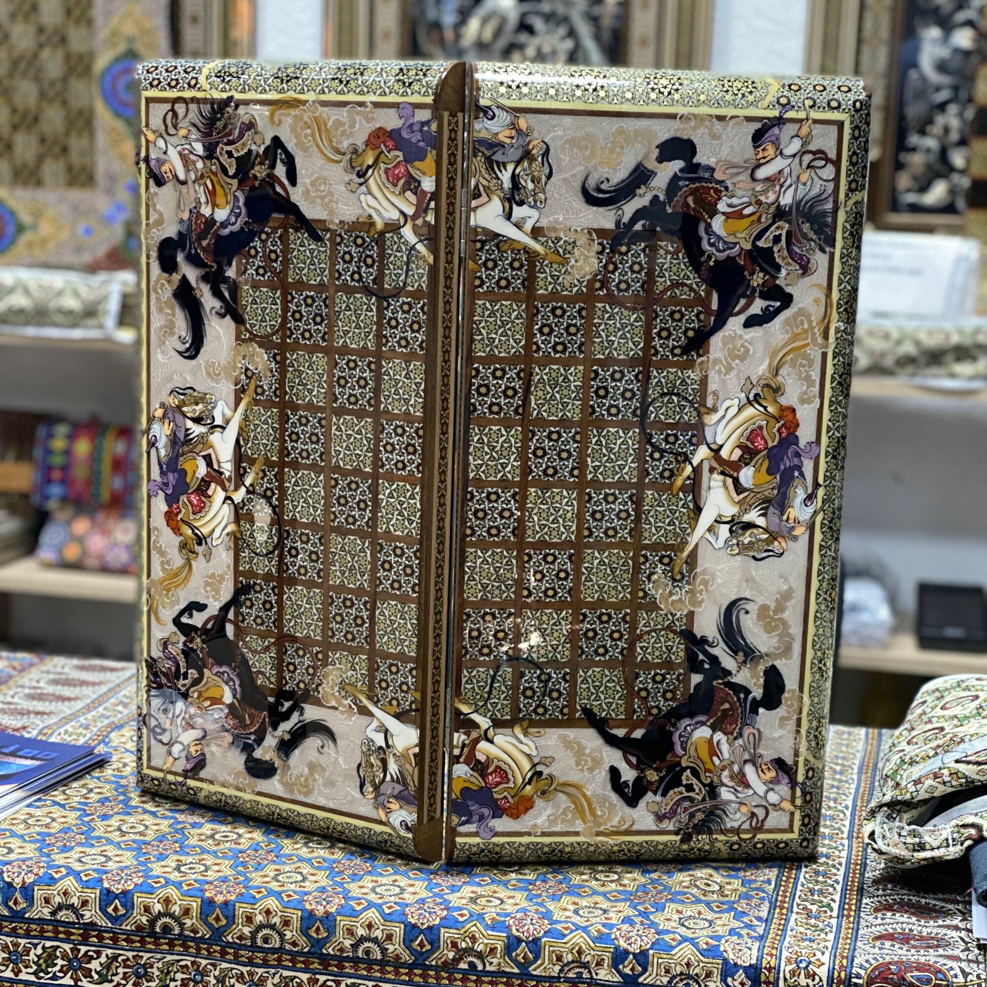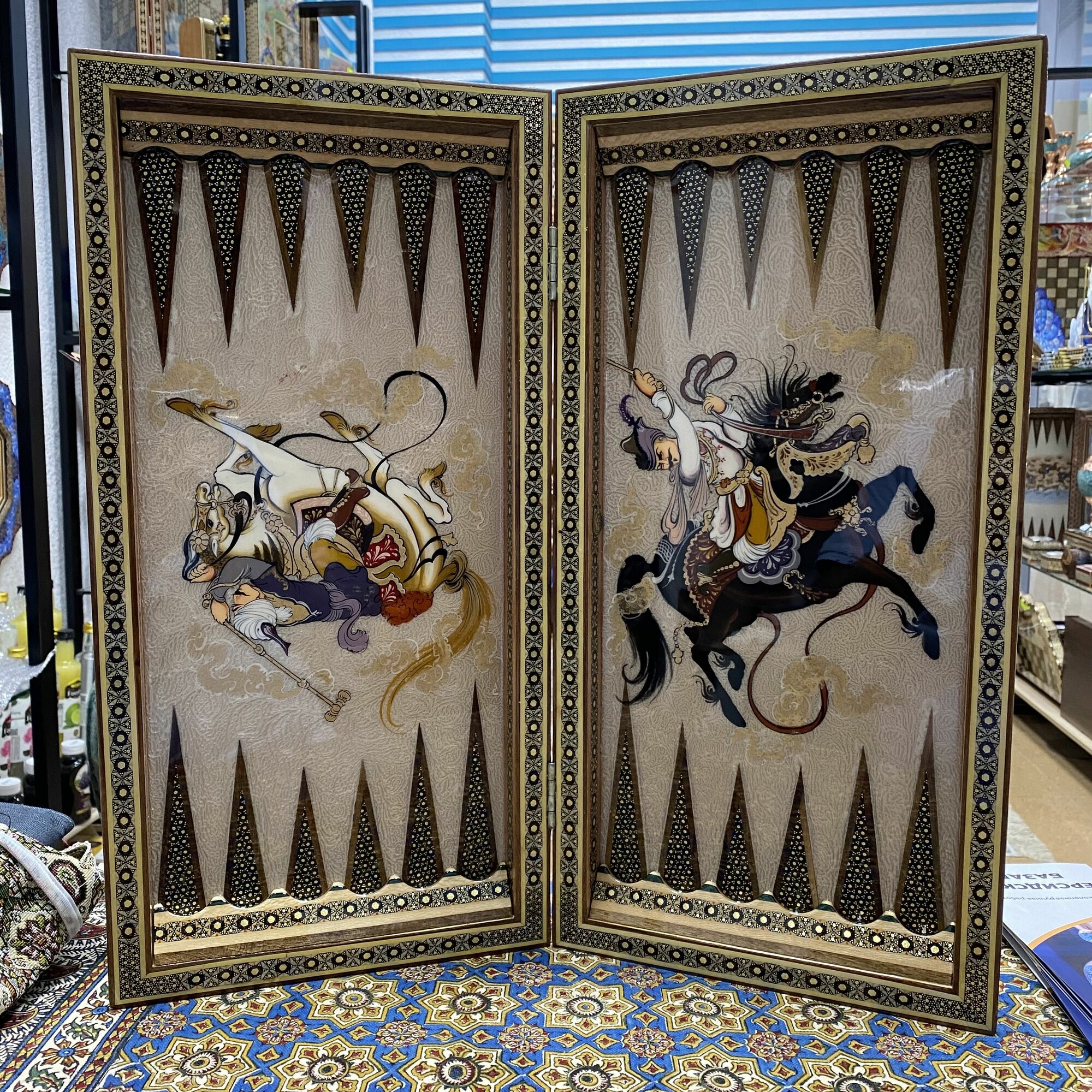 Шахматы-нарды Персидский базар «Хатам» Иран, ручная работа, с миниатюрами, деревянная инкрустация из натуральных материалов