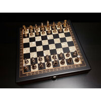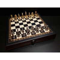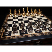 Шахматные фигуры - бронзовые литые, классической формы "Стаунтон", укладываются в индивидуальные ячейки.