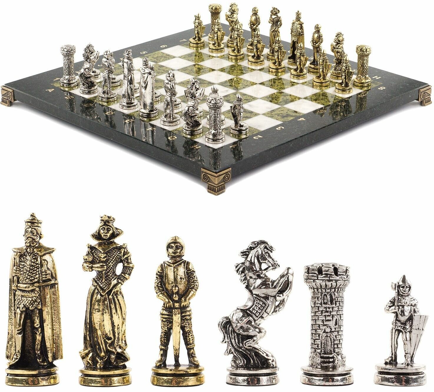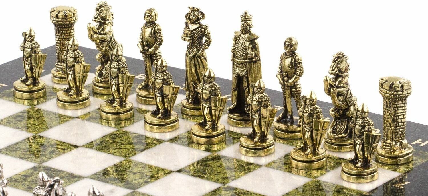 Шахматы подарочные "Рыцари" 36х36 см мрамор змеевик размером доска 36х36х2,5 см, клетка 3,5х3,5 см, высота фигур: пешка 4,4 см, король 6,8 см и весом 7500 г.