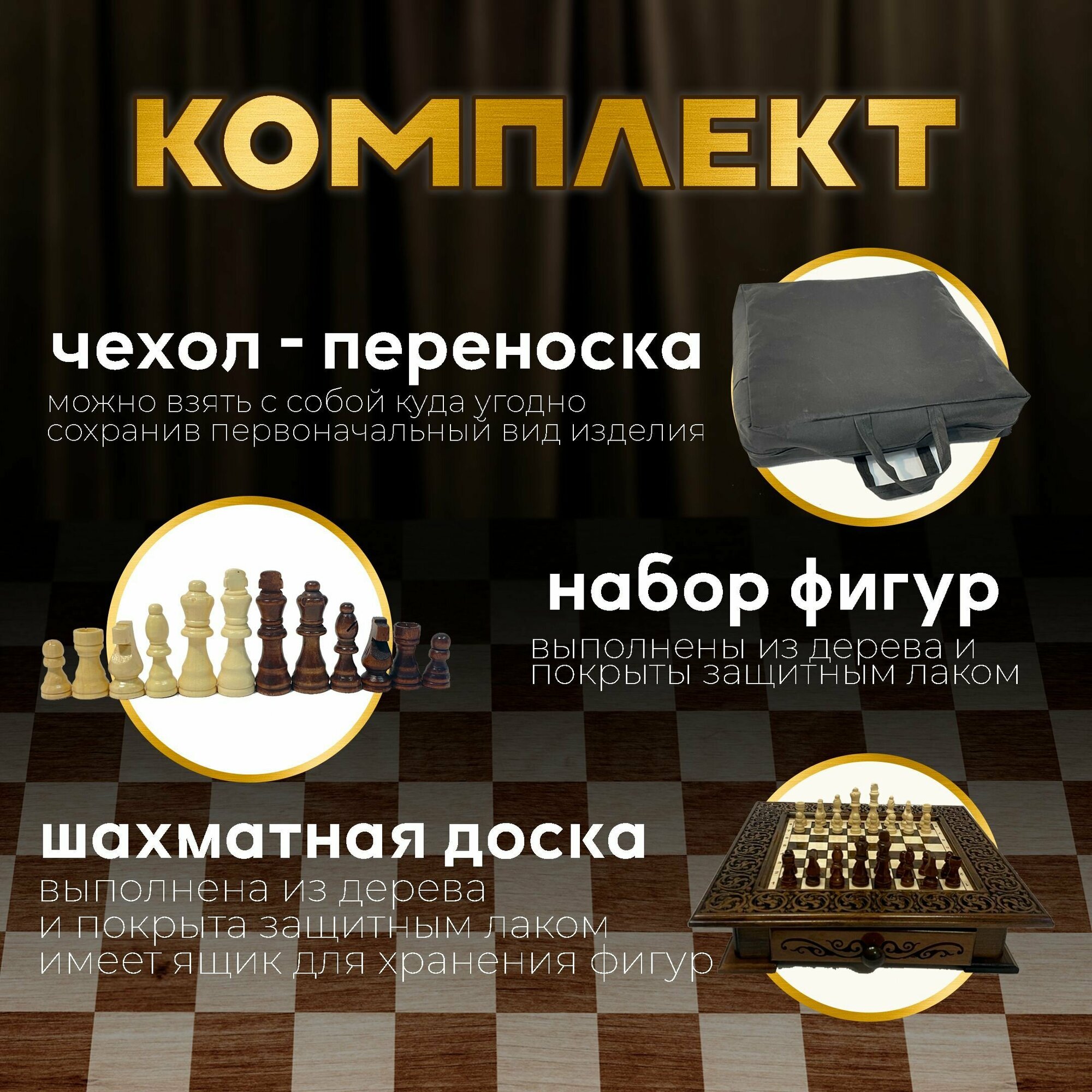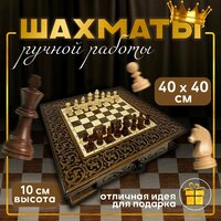Классические деревянные шахматы - идеальный подарок для любителей настольных игр и стратегий! Наши шахматы - это подарочная коллекция, которая является настоящим сувениром. Ручная работа придает им уникальность и неповторимость. Шахматы из натурального бук, размер 40х40, изготовлены из высококачественных экологически чистых материалов, а значит безопасны для здоровья и гарантированно будут радовать вас долгие годы. Сувенирные шахматы, изготовленные с любовью нашими мастерами, станут украшением любой коллекции и идеальным подарком на память для тех, кто любит логические развивающие игры. Каждая шахматная фигура искусно вырезана из дерева вручную с заботой и вниманием к деталям, дополнена подложкой из бархата, поэтому каждый ход на шахматной доске подарит вам еще и эстетическое наслаждение. Шахматы укомплектованы чехлом из ткани для бережного хранения. Турниры по шахматам - эмоциональная и интеллектуальная битва, которая помогает приятно и с пользой провести вечер с семьей и в компании, перезагрузиться в офисе во время перерыва. Это настольная игра, которая развивает логику и тактику, тренирует интеллект и аналитическое, математическое мышление, моторику рук. Гроссмейстерские большие шахматы 40*40 имеют стильный и лаконичный дизайн, который делает каждую доску по-настоящему оригинальной. Такой подарок станет незабываемым к юбилею, свадьбе, дню рождения. Шахматы из дерева станут идеальным выбором, если не знаете, что подарить мужу или коллеге, начальнику и учителю или подростку. В нашем магазине для вас представлена большая коллекция шахмат из дерева на любой вкус. Заказывайте и наслаждайтесь красотой и качеством наших изделий.